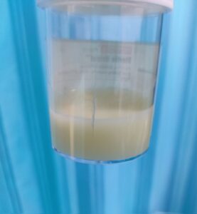 Apparently, the addition of ether turned urine into straw coloured, denoting Chyluria. In some cases, tumors in the abdomen with rupture of lymphatics in the bladder can also lead to cloudy urine.