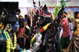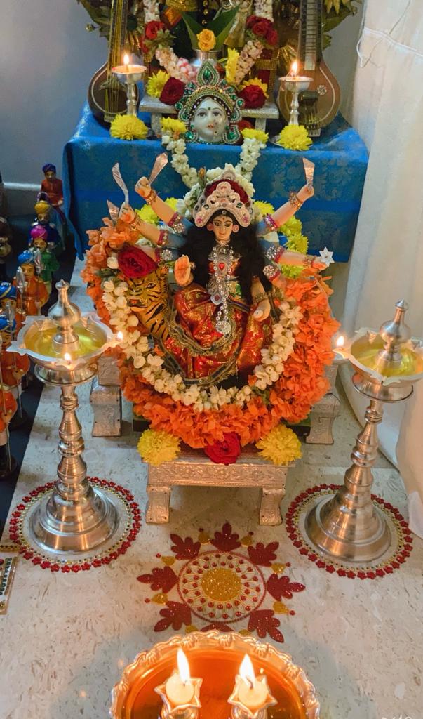 She killed the demon using her trishula (trident) on Vijayadashami after a nine-day-long battle and protected the world, which is now celebrated as Navaratri throughout India.