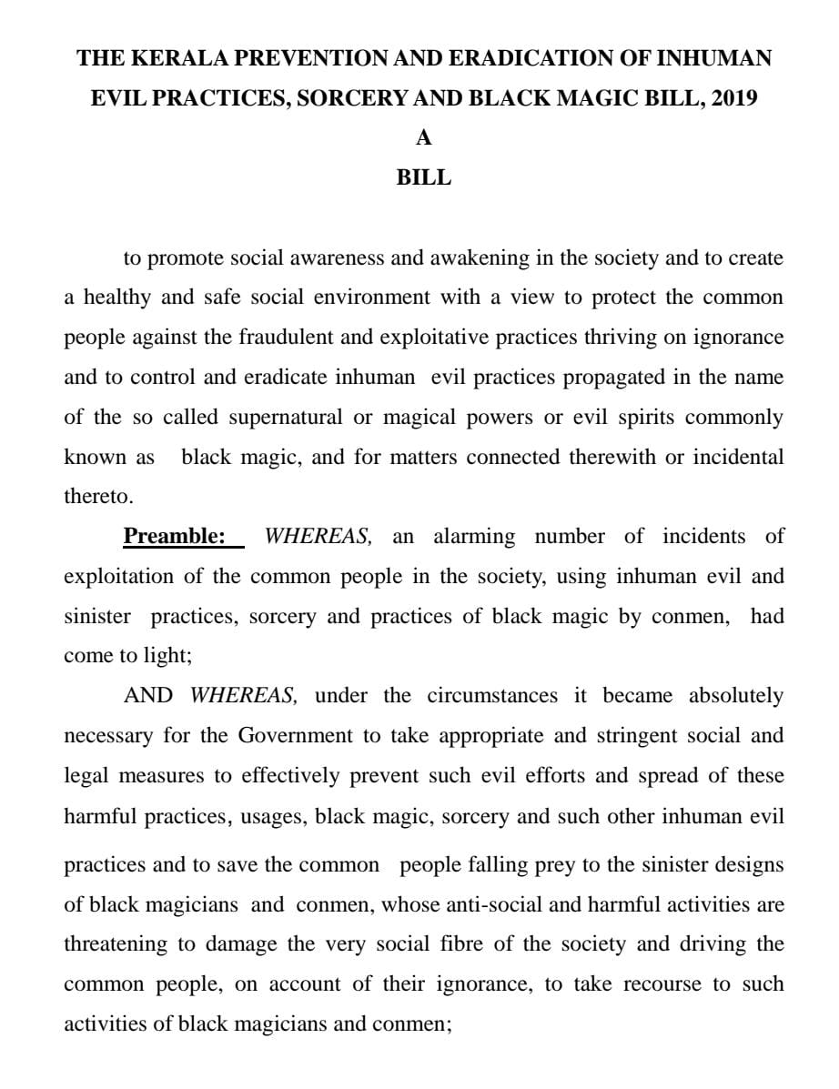 “Kerala is one of the most victimised states when it comes to black magic and occult practices. These are nothing but cloaks to commit organised crime. In a progressive state like ours, a legislation of this kind should have come much earlier,” he added.