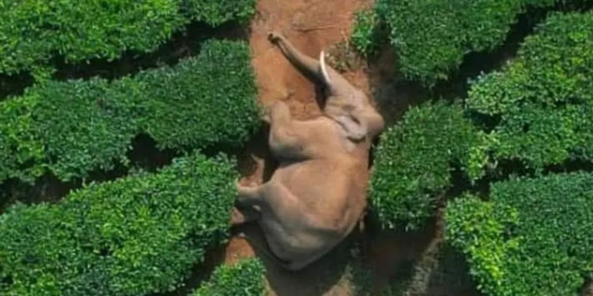 Arikomban sleeping in a tea plantation in Munnar.