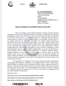 Kerala Cyber Police told South First they act on the directions of the Election Commission of India and that the notices were issued to stop the spread of misinformation.