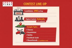 Koduvally in Kozhikode district once again lives up to its reputation, with 13 candidates in the race. At the other end, constituencies like Chavara, Kayamkulam, Nattika, Kozhikode South, and Mananthavady will see straight contests with just three candidates each.