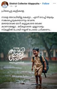 One such post was from the Alappuzha District Collector’s where he shared the image of a child crying with the caption, “Guys, tomorrow will not be a holiday.”