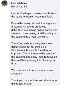 In another post, a parent, out of desperation said, “In the 90s, a kid was there who wanted to have a special class in the school on Sundays too. And that’s none other than our Ernakulam district collector.” (remarked when Ernakulam didn’t feature in the list of districts which announced holiday for educational institutions due to rain).