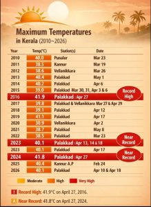 Palakkad’s unique geography, influenced by the Palakkad Gap, appears to intensify this effect, allowing heat to build more readily over exposed surfaces.