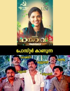 Then there’s Maya V, the LDF’s candidate in Kothattukulam, who woke up one morning to find herself transformed—not politically, but memefully—into Mayavi, the beloved cartoon goblin.