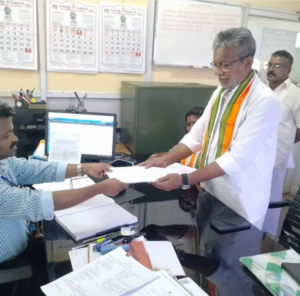 VK Vasudevan is contesting for the panchayat, while his son Binu tries his luck at the block level—both under the Congress banner.