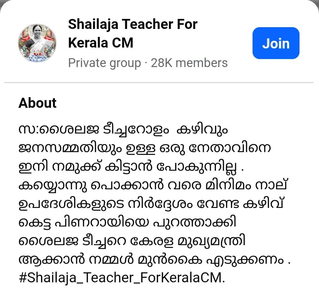 In June 2024, reports emerged that senior CPI(M) leader P Jayarajan had remarked at an internal meeting that people wanted to see Shailaja as Chief Minister. Neither the party nor Jayarajan commented on it publicly.