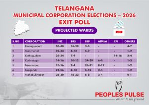 The opposition Bharat Rashtra Samithi (BRS), however, is unlikely to win a single municipal corporation, according to People’s Pulse.