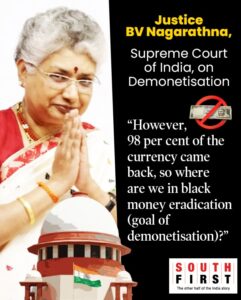 She explained why she dissented, “So I thought (at the time) it (demonetisation) was a good way of making black money white money, of unaccounted cash entering the system. What happened about income tax proceedings thereafter, we do not know. So, this common man’s predicament really stirred me, and I had to dissent.”