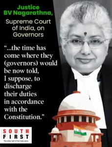 Justice Nagarathna called for Governors to act in accordance with the Constitution rather than being told what to do and what not to do.