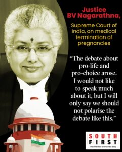 On medical termination of pregnancy cases, she said that the Supreme Court’s pendulum went from one end to another on reproductive rights concerns.